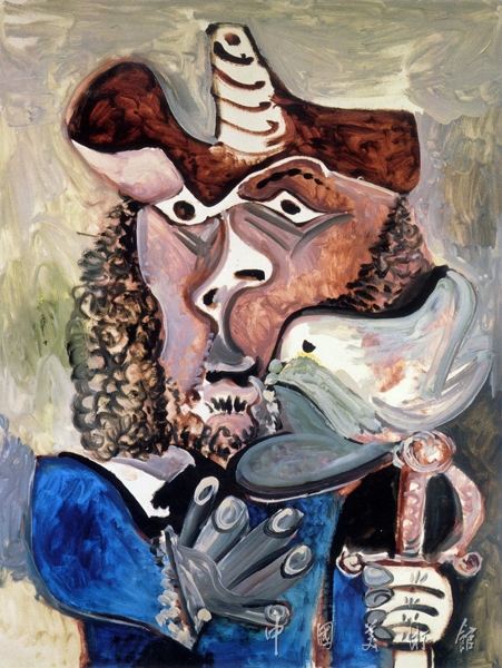 毕加索一生中风格变幻莫测,关于他的各种艺术难题至今仍无人能够完整解读。1967年以后的毕加索在风格上继续创新的同时,在题材上却一直对“步兵”形象情有独钟——深埋在画家灵魂深处的“西班牙情结”愈老愈精神,“步兵”形象却随着画家死神的临近而渐趋衰颓,就象这位《带鸟的步兵》。